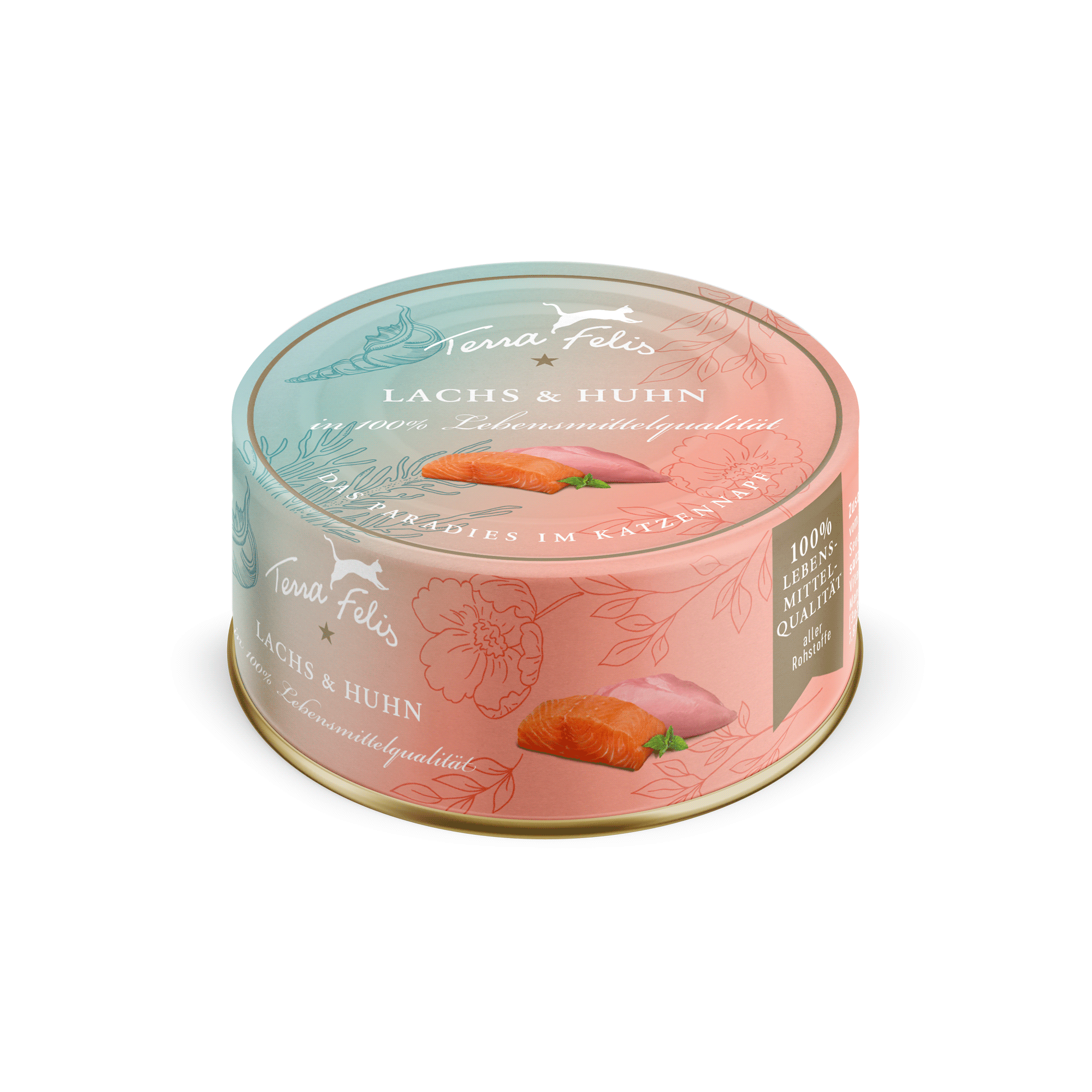 Die getreidefreien Terra Felis-Menüs wurden gemeinsam mit Tierärzten entwickelt. Sie enthalten 94 % frisches Muskelfleisch, wertvolle Innereien und feine Brühe. Der hohe Fleischanteil deckt die Bedürfnisse von Katzen als echten Fleischfressern und stellt sicher, dass sie essenzielle Omega-6-Fettsäuren und einen hohen Anteil an tierischen Eiweißen erhalten, welche für die Energieversorgung und das allgemeine Wohlbefinden notwendig sind. Zur Unterstützung einer gesunden Verdauung enthält jede Mahlzeit eine kleine Menge Ballaststoffe aus ausgewähltem Gemüse. Die Rezepturen sind zudem mit Taurin und Fischöl angereichert, das Omega-3-Fettsäuren liefert. Es werden ausschließlich Zutaten in 100 % Lebensmittelqualität verwendet. Das sorgt für außergewöhnliche Frische und einen appetitlichen Geruch – jede Mahlzeit ist besonders schmackhaft für Katzen.